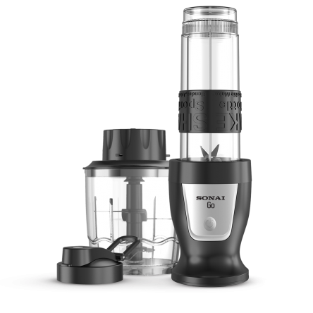 Sonai Blender -Go SH-855 black colored, with a power of 300 Watt and a capacity of 570 ml. It features a 800ml chopper that effortlessly minces, chops, grinds and blends various ingredients for easy m..